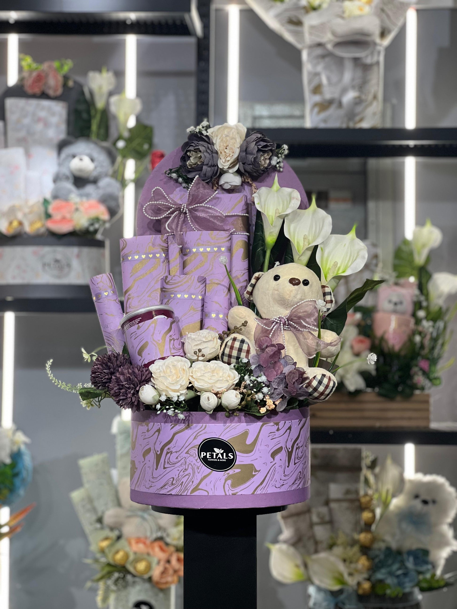 Purple Bliss is Featuring lots of imported Chocolates, Artificial Flowers, a cuddly teddy bear, all beautifully arranged in a box, which if perfect for any occasion.